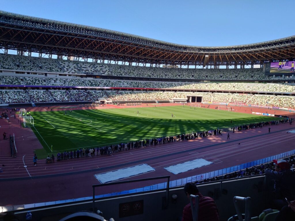 キックオフまで1時間弱ぐらいのタイミングでスタジアム(今年からMUFGスタジアムになった国立競技場)着。1層はほぼ満席だったので2層に移動し、ブロックの端っこ(だいぶ広島ゴール裏に近め)の席を確保。初タイトル奪取に向け燃える広島と、先輩の意地を見せたい神戸の対戦ということで、いやが上にも期待が高まる。
